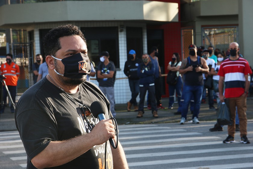 Fábio Mello, petroleiro e pré-candidato a prefeito de Cubatão, durante protesto na Refinaria de Cubatão (SP)