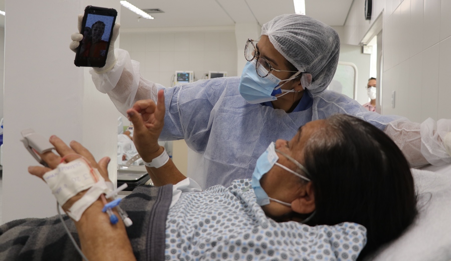 Danila destaca que um dos diferenciais do trabalho foi o estabelecimento de um sistema de comunicação entre os familiares e os pacientes internados. “Como não havia visita, criamos uma rotina de contatos entre o paciente e seus parentes, com as visitas virtuais (videochamadas) pelo Whatszapp, entre outros procedimentos”, explicou a assistente social.