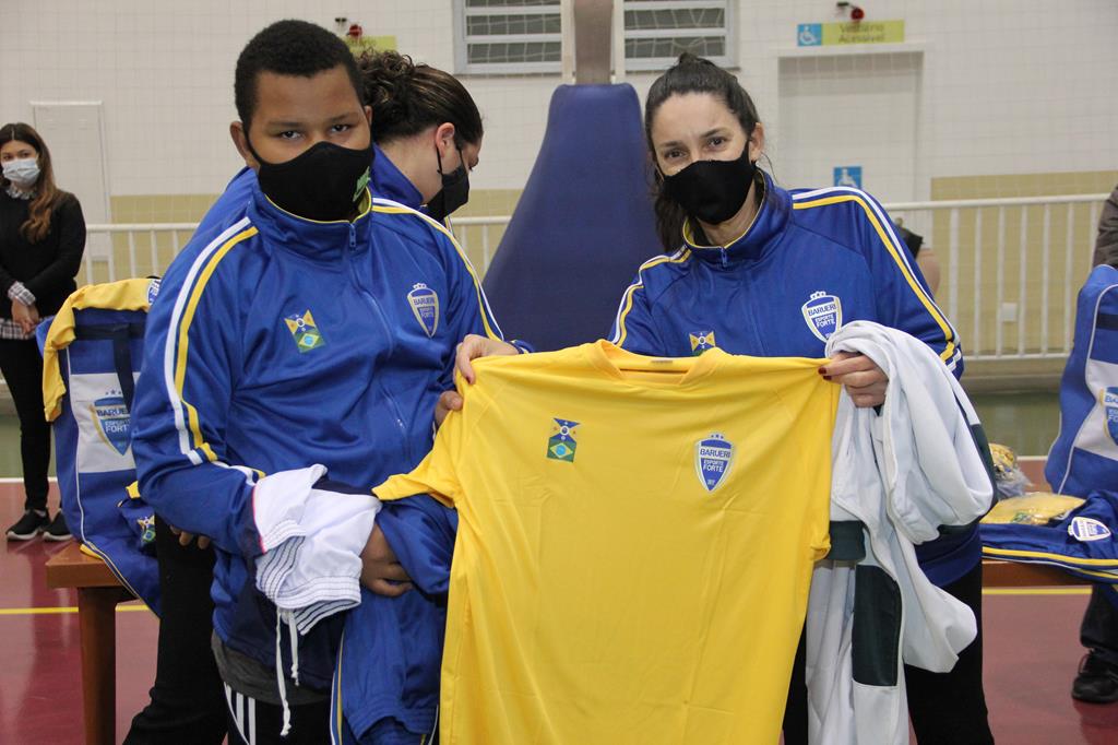Foram distribuídos na ocasião 24 abrigos em microfibra (calça e jaqueta) na cor azul clara. O Barueri Esporte Forte tem 27 alunos matriculados na categoria Sub-11.