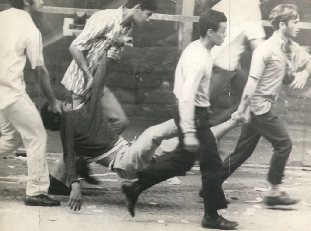 Manifestantes carregam jovem ferido pela repressão militar aos protestos de 21 de junho de 1968, no Rio de Janeiro / Arquivo Nacional